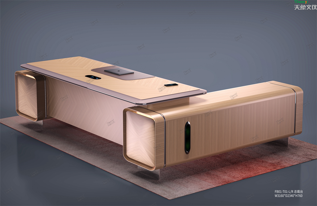 領袖大班臺正視圖的設計靈感來源于“鯤鵬展翅”和“天安門建筑造型”結(jié)合兩只祥獅聳立”的穩(wěn)固造型,寓意鯤鵬可以給主人帶來事業(yè)騰飛以及遠大的前程天安門建筑外觀”寓意著企業(yè)和主人的江山永固;“兩只祥獅聳立”也象征著主人每天擁有雙獅護主、祥獅獻瑞的平安、吉祥意境!