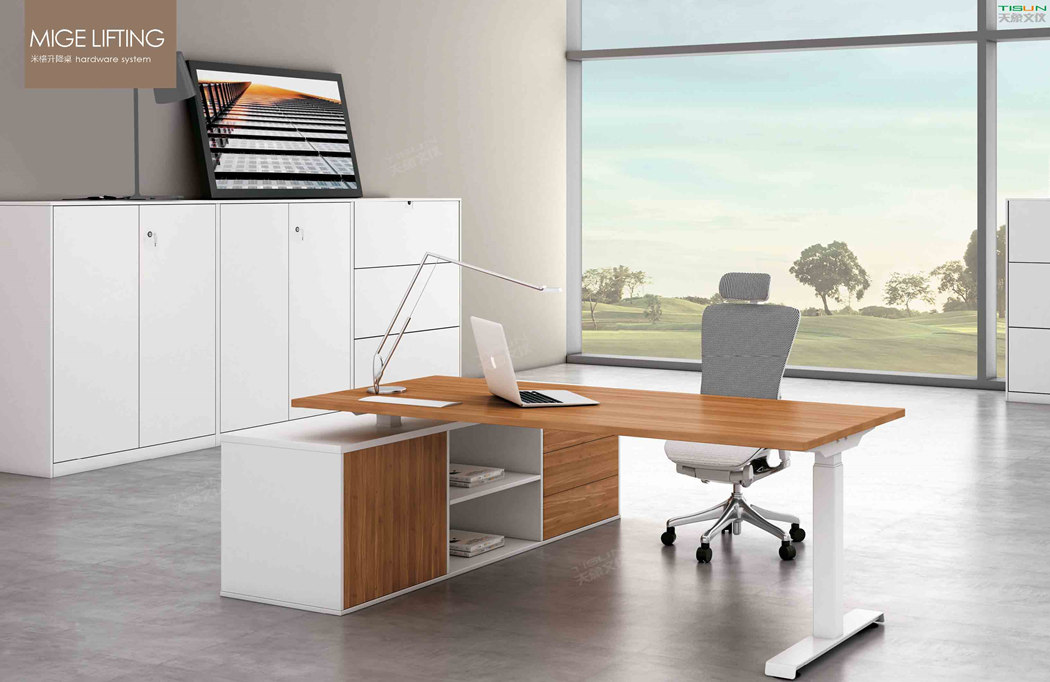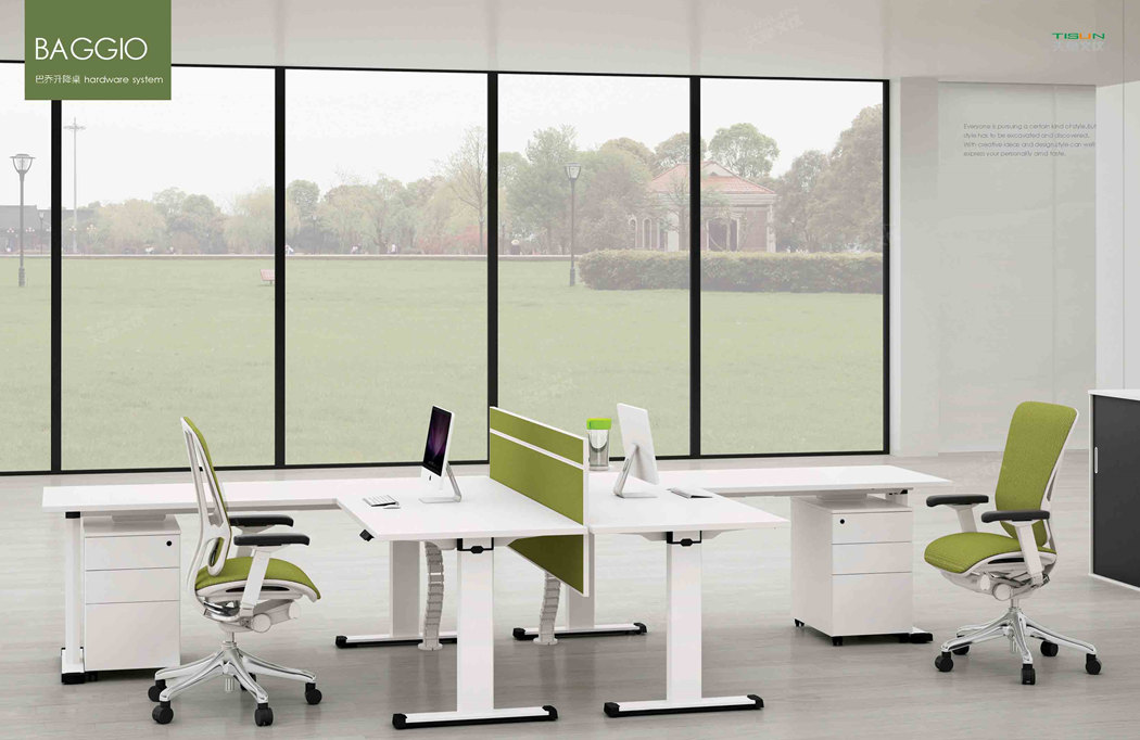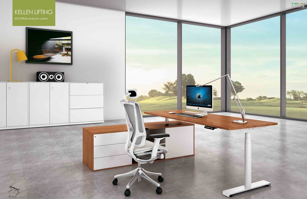 The multi-functional product offers a range of postures for the user -- including a variety of sitting, standing and moving postures for daily work. The user can choose and control his or her own office mode. The height of the office table is conveniently adjusted from 750mm to 1150mm. The easily controllable electric height adjustment mode makes the users' body and mind full of passion and vitality, and effectively promotes their overall health.